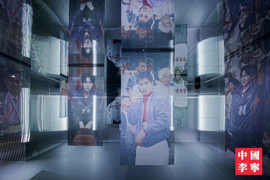 进入沉浸式空间的「序幕区」,首先映入眼帘的是李宁先生、王楚钦先生以及中国李宁过往大秀经典瞬间的巨幅海报呈现,参与者漫步穿梭在光影间,感受不同时代的态度表达。移步向前,中国李宁过往大秀视频开始闪回,将视线拉到一个个凝聚时尚潮流演绎与T台动感的张力场景。随着屏幕刻意营造的「故障」卡断拉丝,NPC出场带入剧情,穿越时空之旅就此开启。
