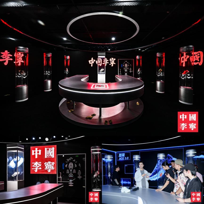 「科技企划室」空间以产品设计创意中心为概念,让参与者直接化身「实习设计师」,与NPC设计师、设计师助理一同参与到烈骏ACE 3.0的创作设计过程之中,亲自上手挑战拼装互动。现场以12根通天立柱展陈品牌历史档案馆烈骏IP鞋款及全新系列烈骏ACE3.0,配合光电效果带来震撼视觉冲击。参与者最终按下方印按钮,让新款烈骏ACE 3.0正式揭晓,共同见证这一诞生时刻。烈骏ACE 以李宁品牌经典跑鞋「烈骏」为蓝本,2018年发布至今不断进化。烈骏ACE 3.0汲取战马的肌肉与骨骼作为设计的灵感,融入中式美学的写意线条,并将策马奔腾的速度和力量化作运动美学的创想。更值得一提的是,极具辨识度的、夸张轮廓造型的 “弓”造型中底系统,其弧形结构灵感源自古代弓箭,暗喻“蓄势待发”的东方动态哲学,烈骏ACE 3.0不仅凸显出中国李宁在专业产品的基底之上,大胆展开时尚运动方向的探索与演绎,更展示了强大中式美学、中国文化的叠加运用能力。