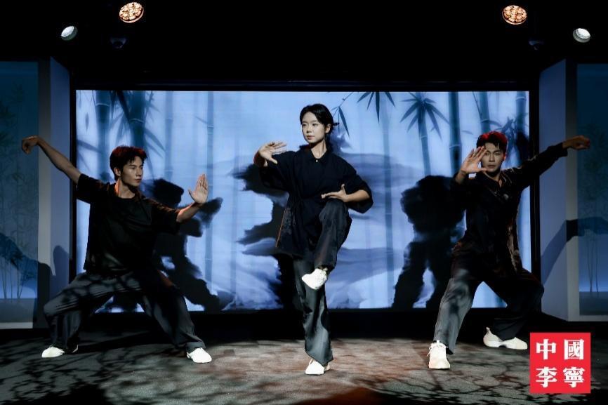 「易室」空间则将参与者拉入水墨氤氲的中式诗意场景之中。功夫师傅携其弟子分别上脚悟道ACE 3.0及悟道3.0,在充满禅意的竹林场景中带来中国功夫的实战演绎,更以热成像的创意视觉让整个空间更具视觉动效,带领大家在专注中领悟潜藏于自我的哲学智慧。作为中国李宁经典IP全新之作的悟道ACE 3.0,保留了悟道大脚趾上翻的标志性识别以及悟道镜像IP设计,提供舒适轻量的上脚体验,并融入中国古代「锤纹」和「松烟入墨」的工艺手法,展现产品中蕴藏的中国文化元素。悟道3.0,以解放双脚的赤足鞋为理念,将阴阳平衡的分割应用在鞋面不对称设计,带来更具东方智慧的哲学韵味。本季功夫系列服饰则以「岭南醒狮」为灵感将神兽狻猊的磅礴气势融入运动风,诠释中式美学与现代机能。通过将中国文化与运动形态、科技融合一体演绎中式美学设计,中国李宁不断投入于对中国文化的传承与深耕,以时尚的表达方式向世界展示东方审美和中式哲思。